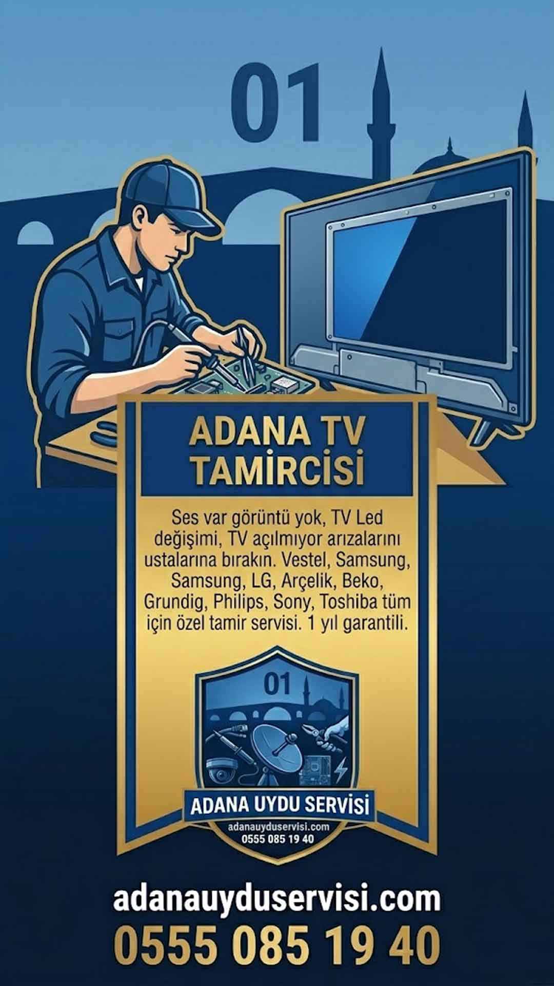 Televizyonunuzda ses var ama görüntü yok mu? TV ekranı karardı mı veya cihazınız hiç mi açılmıyor? Bu tür arızaları işin ustalarına bırakın! Adana’da Vestel, Samsung, LG, Arçelik, Beko, Grundig, Philips, Sony, Toshiba gibi tüm lider markalar için özel tamir servisi hizmeti sunuyoruz. Yapılan tüm işlemler ve parça değişimleri 1 yıl garantilidir.